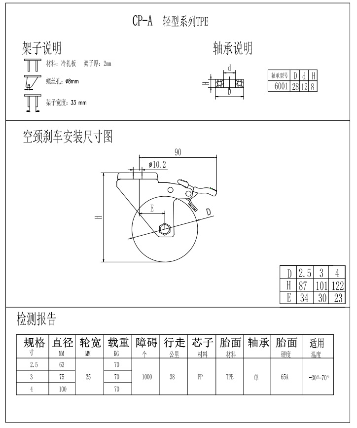 輕型腳輪-CP-A3-2561空頸剎車TPE